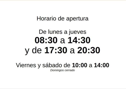 Nuestra tienda física está abierta de lunes a jueves de 08:30 a 14:30 y de 17:30 a 20:30. Viernes y sábados solo por la mañana de 10 a 14. Este es el horario de envío y atención al cliente para pedidos desde nuestra web.